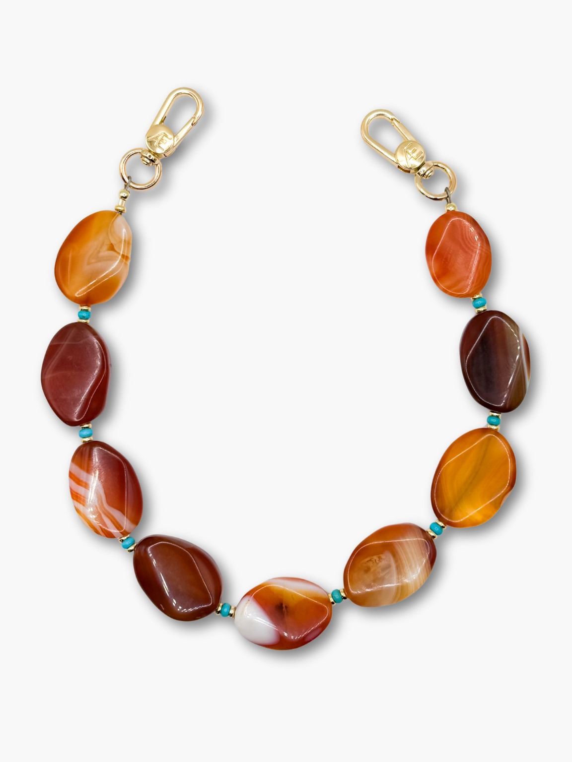 Each piece is handmade. The gemstones have different patterns and shades, so variations in size and color may occur.