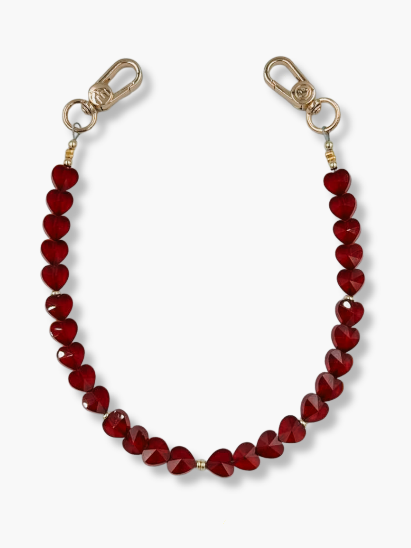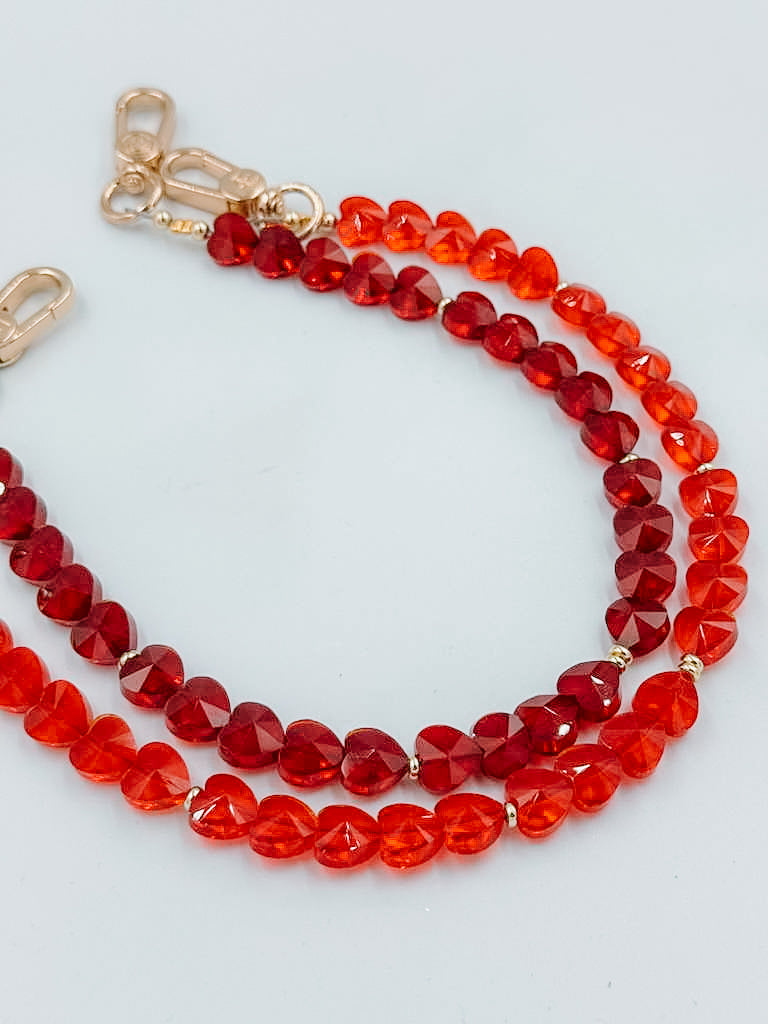 Featuring faceted dark red heart beads that shimmer beautifully in the light, this wristlet is both chic and functional.