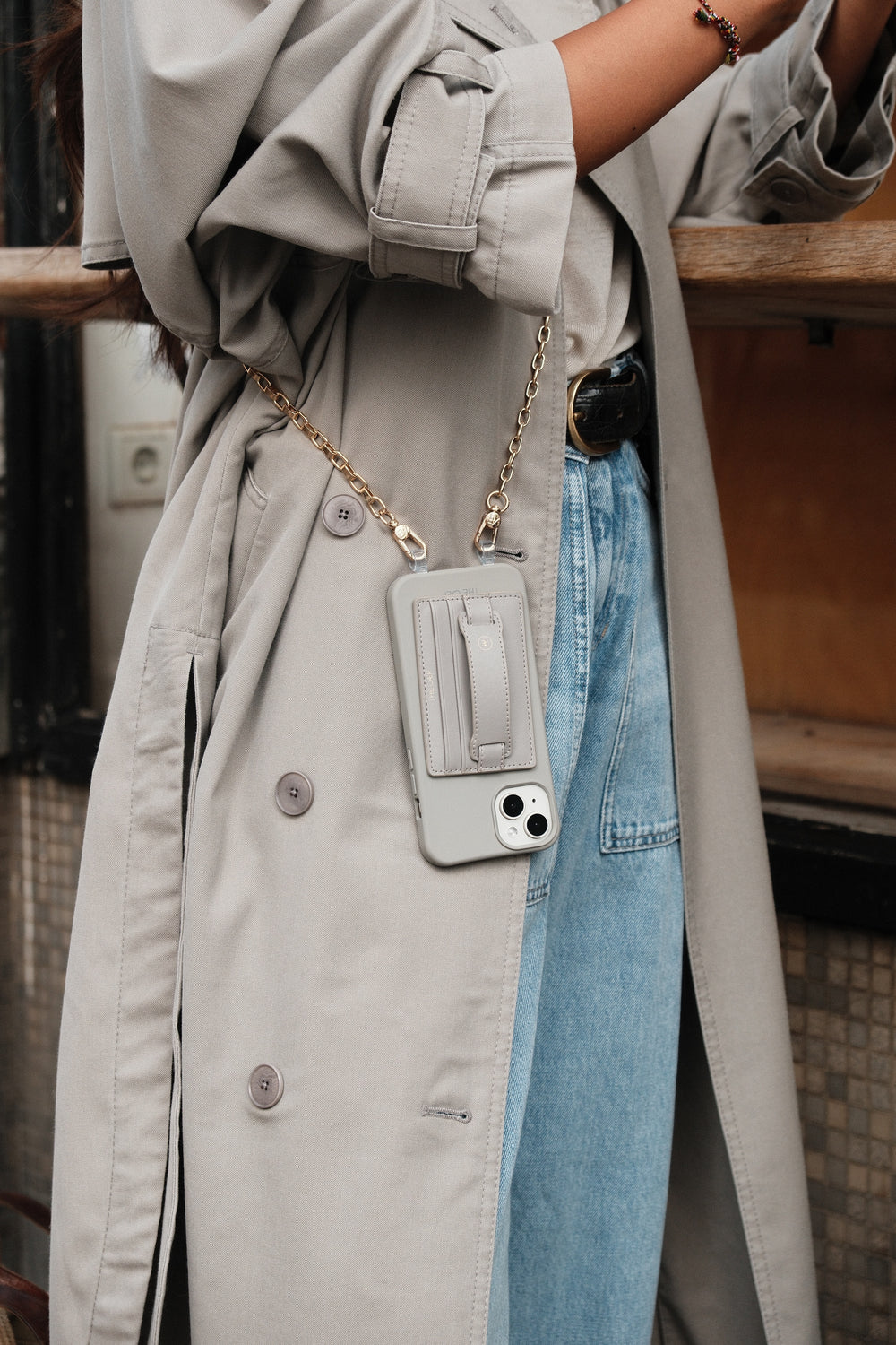 EXPLORE THE ENDLESS POSSIBILITIES ON OUR SITE! FIND THE PERFECT COMBINATION, BEGINNING WITH YOUR FAVORITE CASE AND DETACH HOOK COLOR, AND THEN ADDING ON YOUR FAVORITE CROSSBODY CHAINS, WRISTLETS AND WALLETS.