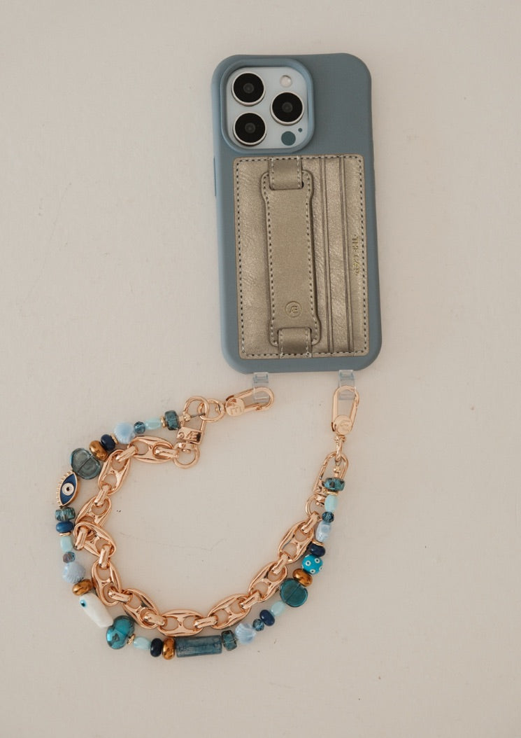 Das schimmernde, goldene Hoop-Portemonnaie ist aus hochwertigem veganem Leder gefertigt und bietet Platz für bis zu vier Kreditkarten. Dieses Portemonnaie verfügt über eine elastische Schlaufe mit Kordelzug zum einhändigen Schreiben von Textnachrichten und Fotografieren und dient gleichzeitig als praktischer Ständer.