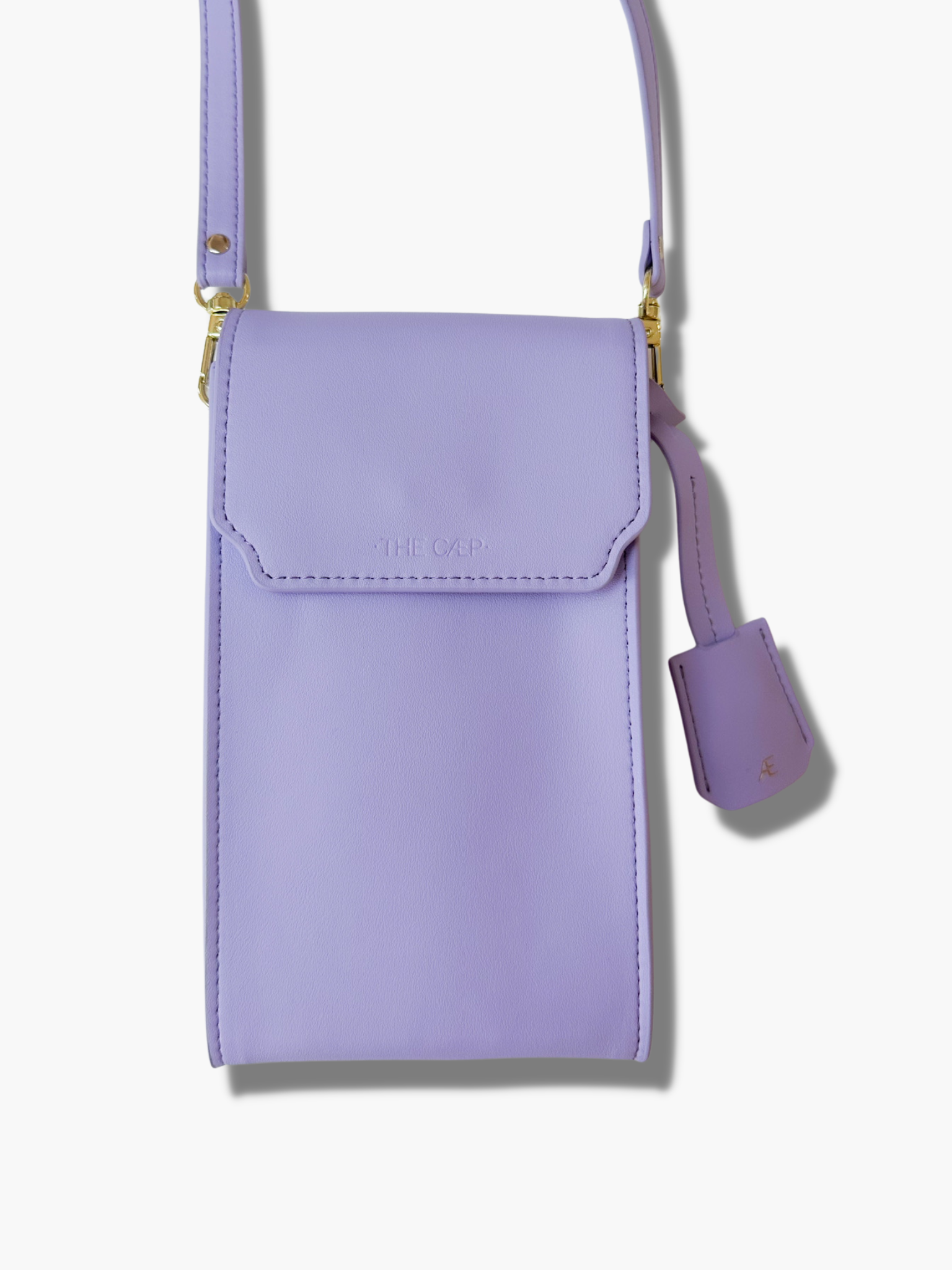 Das aus hochwertigem veganem Leder gefertigte Hoop-Portemonnaie in Lavendel bietet Platz für bis zu vier Kreditkarten. Dieses Portemonnaie verfügt über eine elastische Schlaufe mit Kordelzug zum einhändigen Schreiben von Textnachrichten und Fotografieren und dient gleichzeitig als praktischer Ständer.