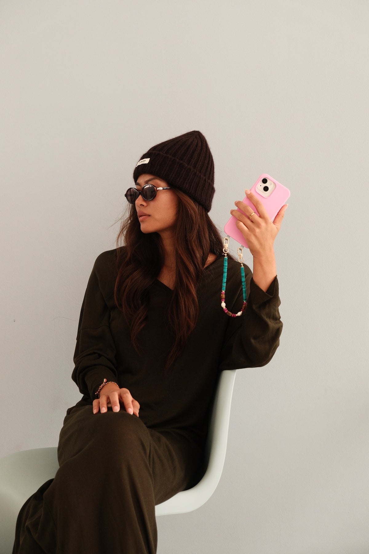 Bold color, effortless energy. The Malibu + Paloma Set pairs our vibrant Malibu pink case with the Paloma beaded wristlet for a playful, statement-making take on hands-free phonewear.