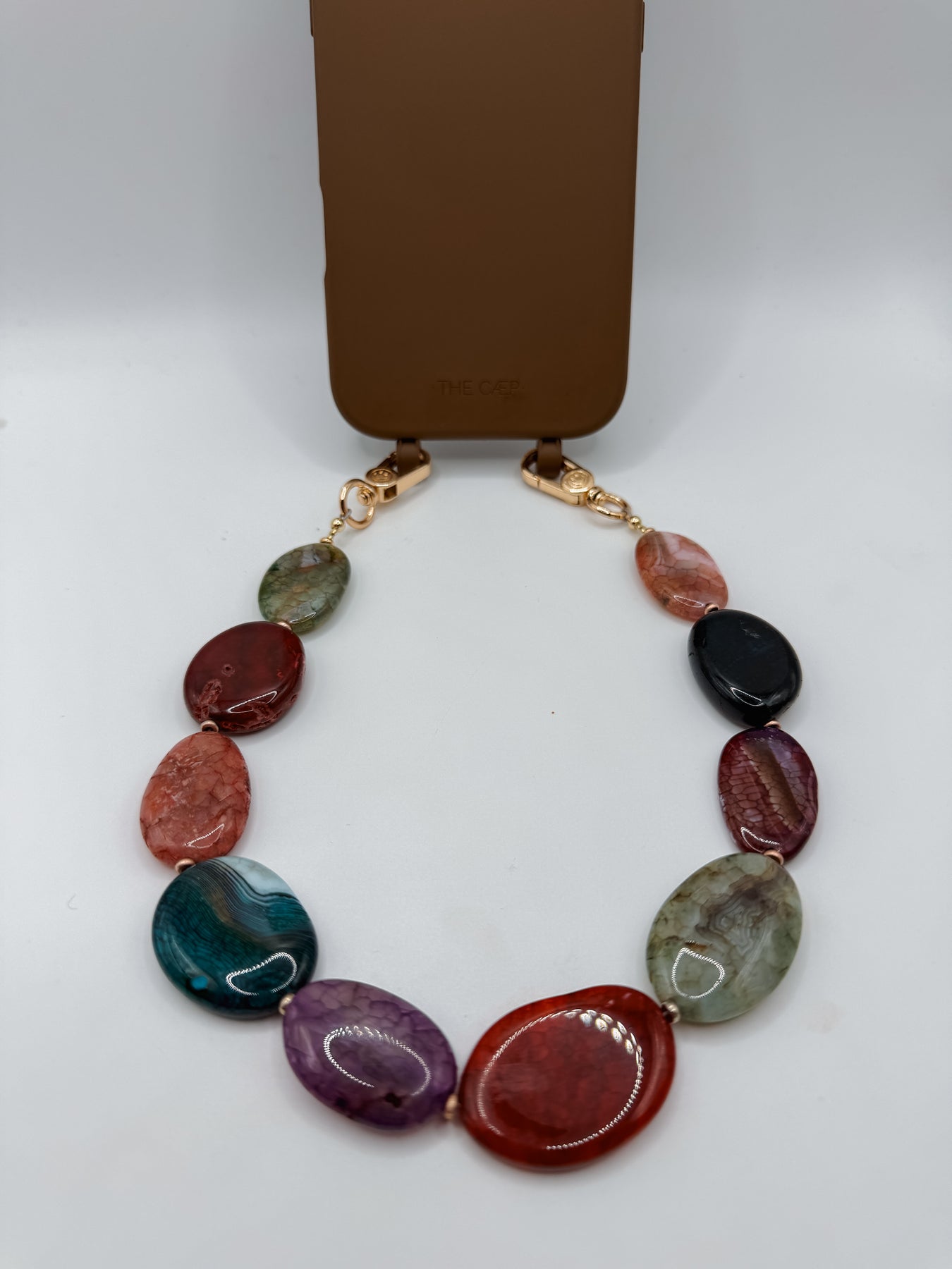 The Montana case is crafted from flexible yet durable TPU with a smooth, velvety finish and features a shock-absorbing inner pad for reliable everyday protection. The Tula wristlet is handmade with large, freeform dyed agate beads. Each bead fully unique in pattern, shape, and shade. No two wristlets are ever the same, making every piece truly one of a kind.