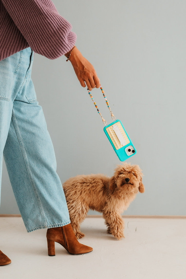 Colorful, handcrafted, and completely one of a kind. The Tulum + Bazaar Set pairs our fresh Tulum case with the Bazaar beaded wristlet for a bold, artful take on hands-free phonewear.