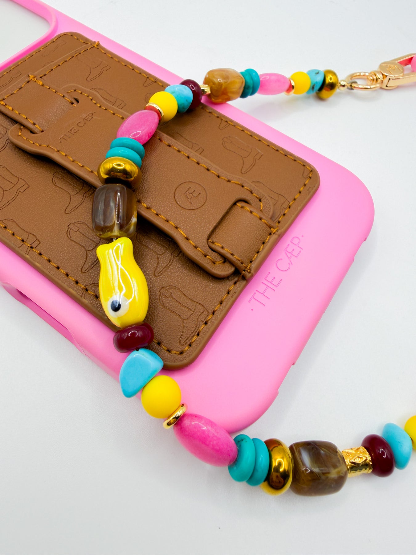 Crafted in vegan leather with our signature pull-through loop, it’s practical and eye-catching all at once. The top card slit keeps your most-used card handy and secure for life on the move. It is designed to store up to two credit cards. Featuring an pull-string elastic loop for single-handed texting and photography, this wallet also functions as a convenient kickstand.