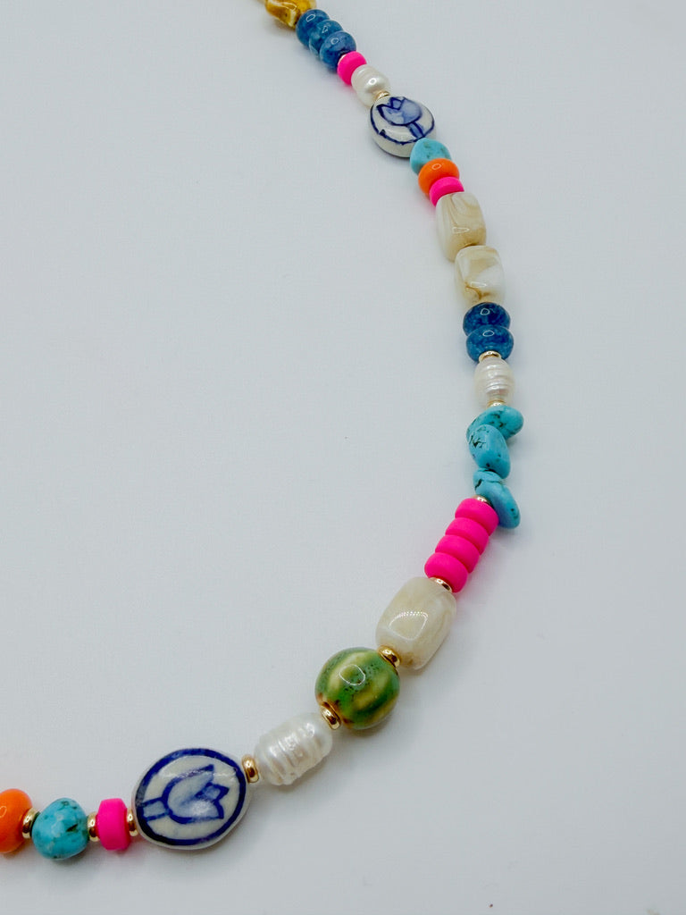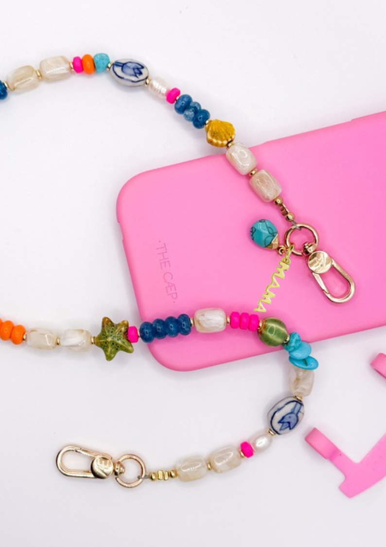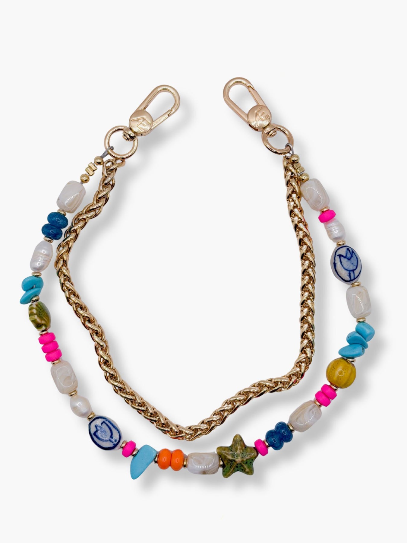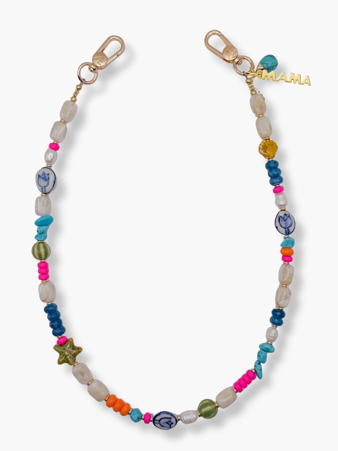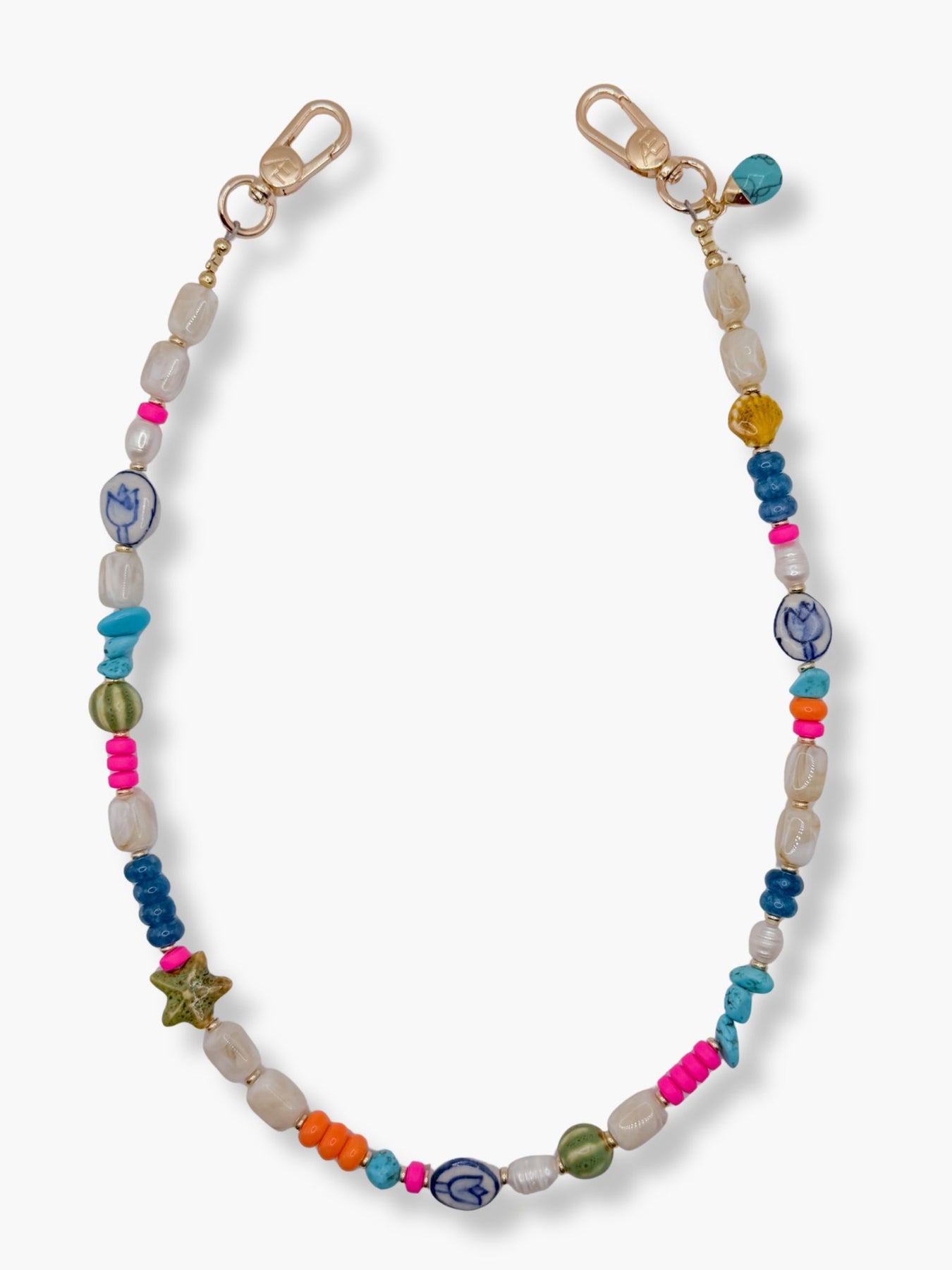 Lilo brings together soft neutrals with pops of ocean blue and neon; finished with playful ceramic details like the hand-painted tulip beads and a subtle star accent. It’s that effortless mix of calm and color that works with everything, but never feels boring.