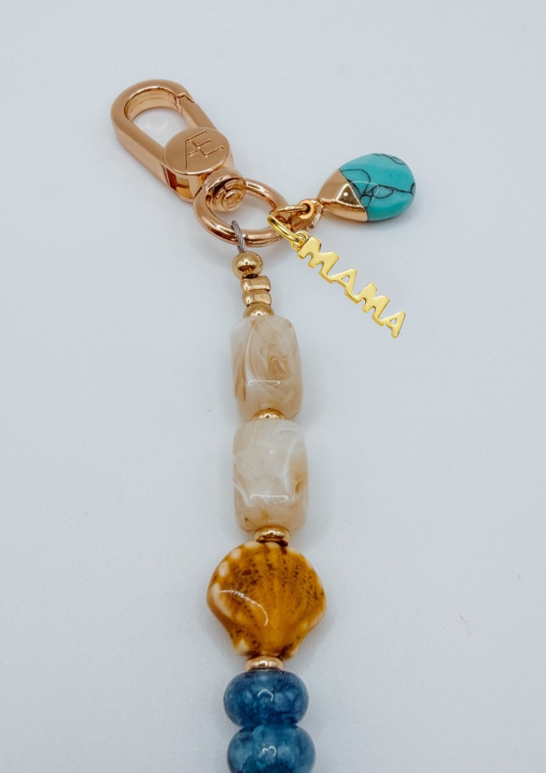 A delicate MAMA charm paired with a turquoise stone detail adds a personal touch. Quietly meaningful, without overdoing it.