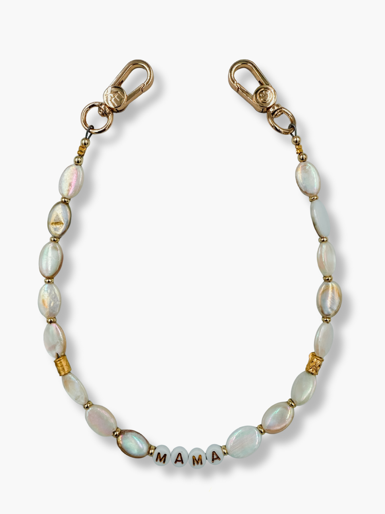 Soft, luminous, and effortless — Nami is made with natural freshwater shell beads that shimmer with every move. Inspired by the calm strength of the sea (Nami means wave), this piece brings a clean, elevated touch to your everyday carry. Accented with gold spacer beads and available with or without “MAMA” letter beads, it’s a subtle statement with meaning built in.
