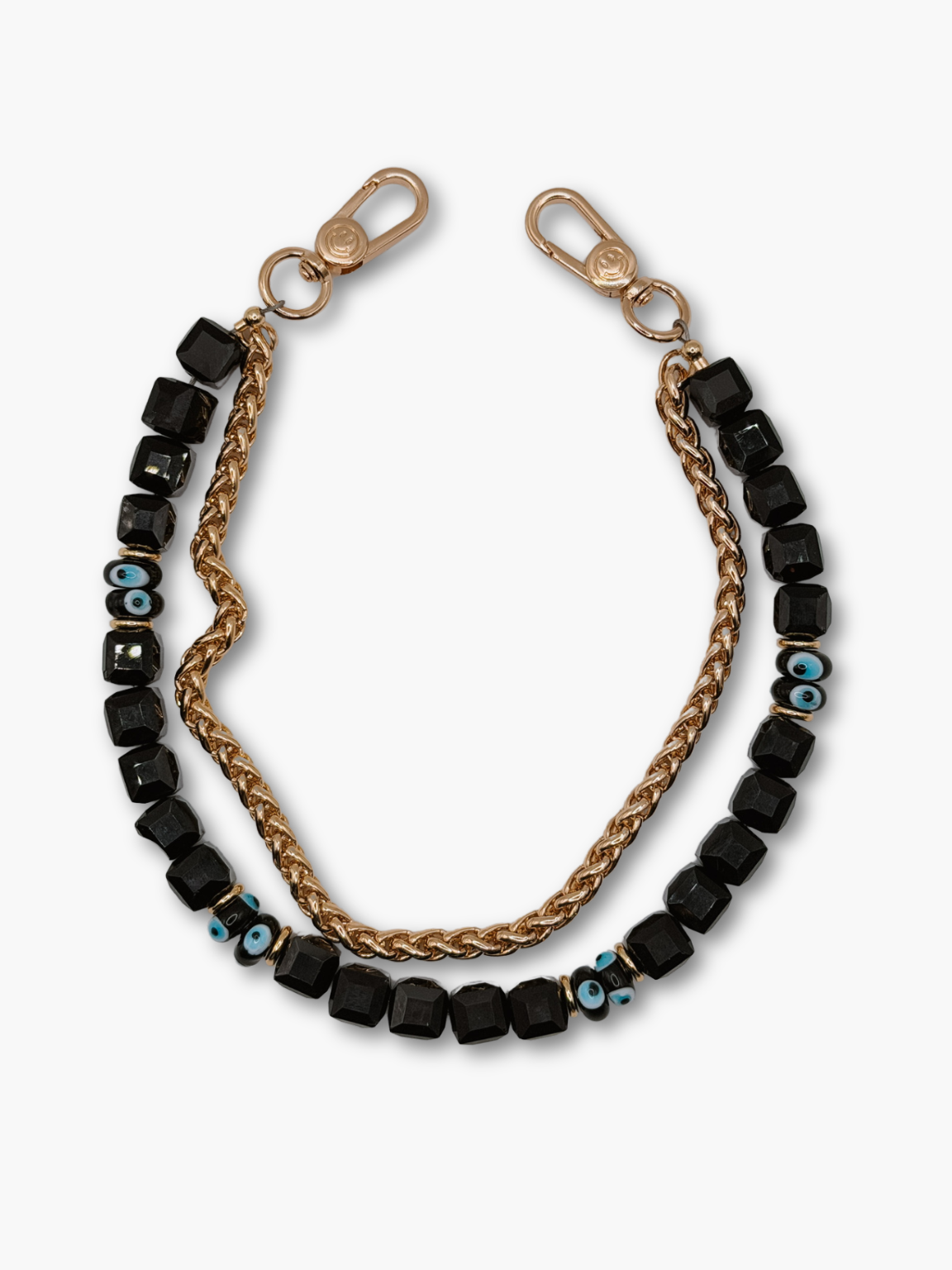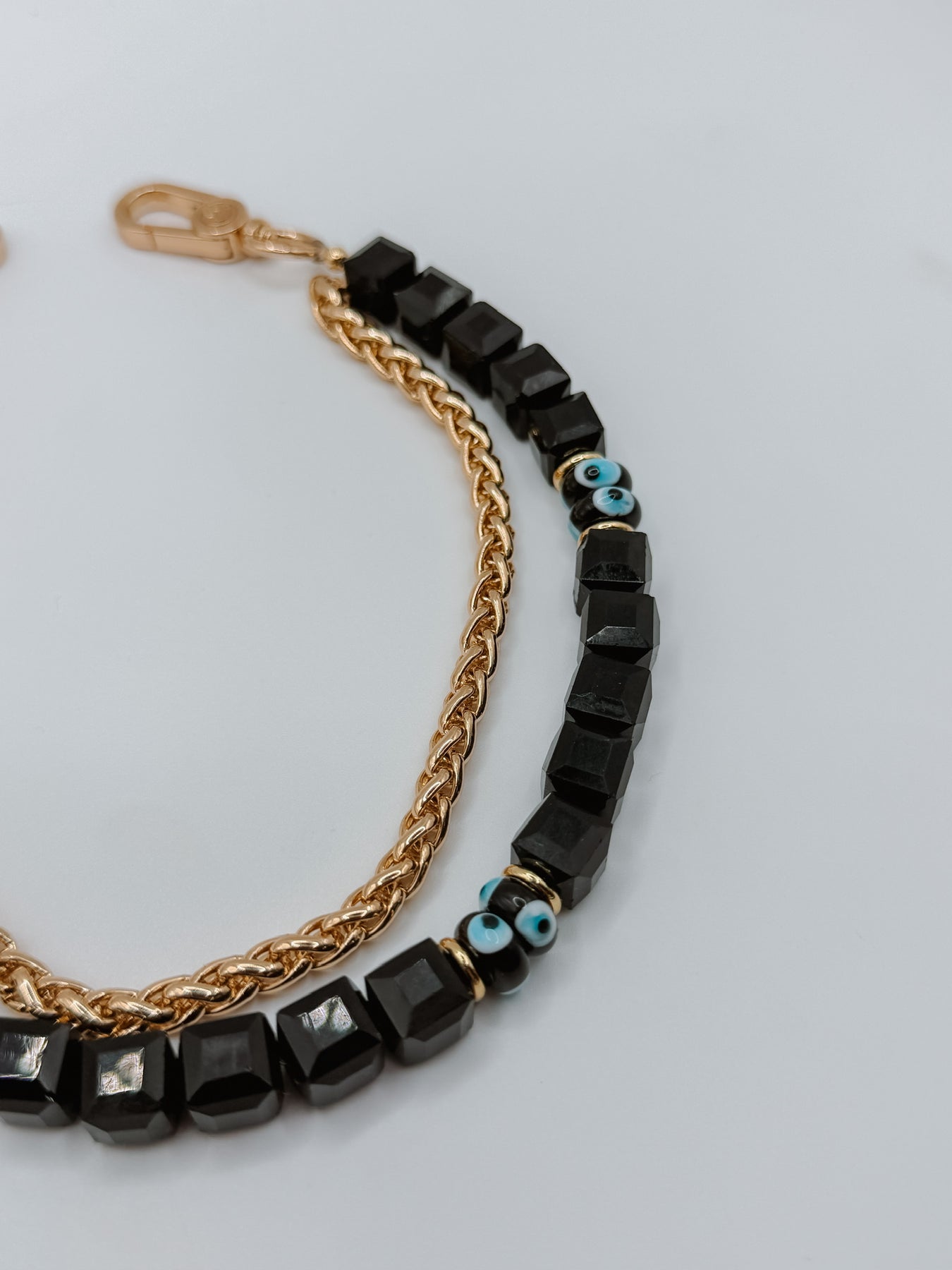 A little edge, a little mystique. Salem pairs 10mm faceted black glass beads with Turkish gemstone evil eyes — each one hand-strung and spaced with subtle gold or silver disks for a refined finish. Its sleek, moody palette brings a hint of protection and just the right amount of attitude to your everyday carry.