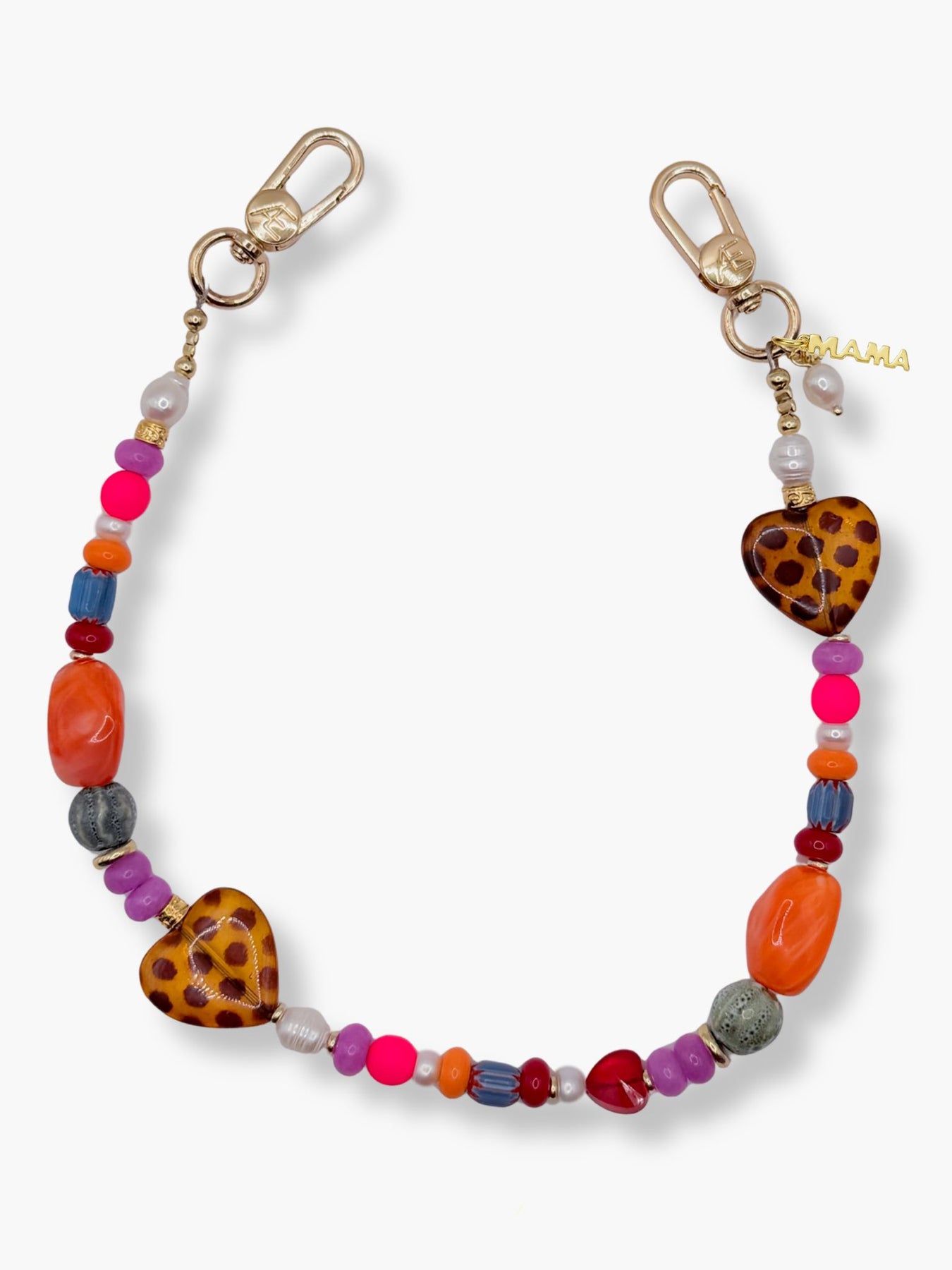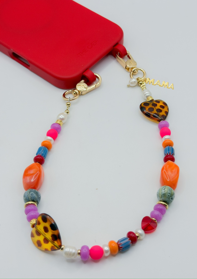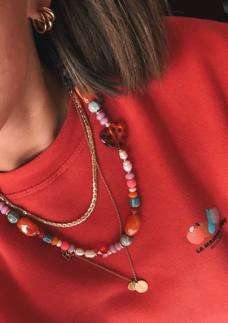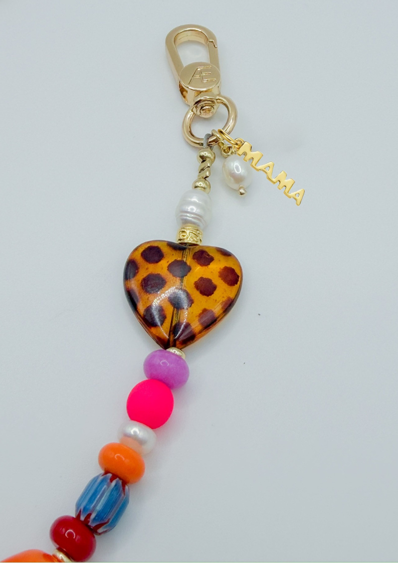 Vivi is your statement piece for days when your outfit needs something. A mix of vibrant glass beads, natural stones, and freshwater pearls comes together with our signature gold hardware and double leopard heart detail (because one simply isn’t enough). The added chain gives it that layered, jewelry-like feel. Designed to stand out without trying too hard.